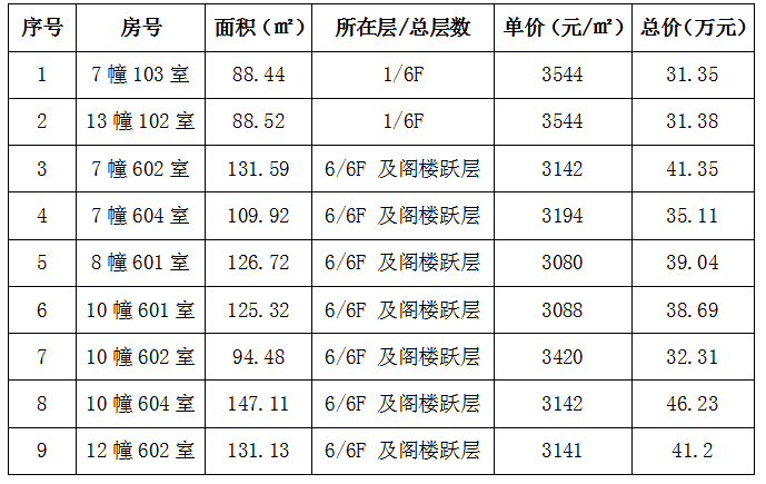 一、拍賣標(biāo)的:裕安區(qū)城南鎮(zhèn)振華藍(lán)泊灣9套學(xué)區(qū)房,單價(jià)3080元/㎡-3544元/㎡不等,付款方式:首付50%,成交后一年內(nèi)付清余款。具體見(jiàn)下表: