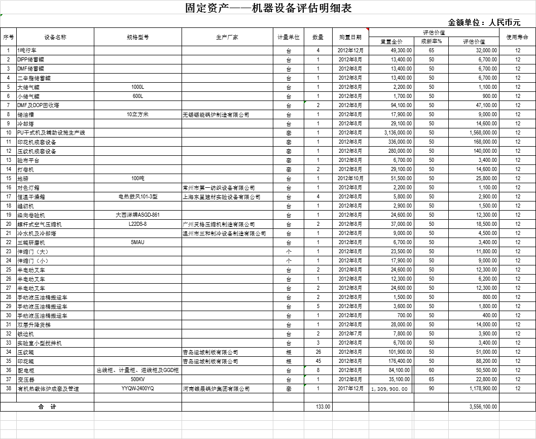 一、拍賣標(biāo)的:PU干式機(jī)及輔助設(shè)施生產(chǎn)線一套、印花機(jī)、壓紋機(jī)成套設(shè)備、有機(jī)熱載體爐成套及管道等二手設(shè)備一批,包括行車、回收塔、配電柜、變壓器、電子及辦公設(shè)備等。