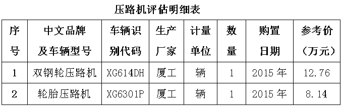 1、雙鋼輪壓路機(jī),車輛識(shí)別代碼XG614DH,生產(chǎn)廠家:廈工,購置日期:2015年。參考價(jià):12.76萬元。