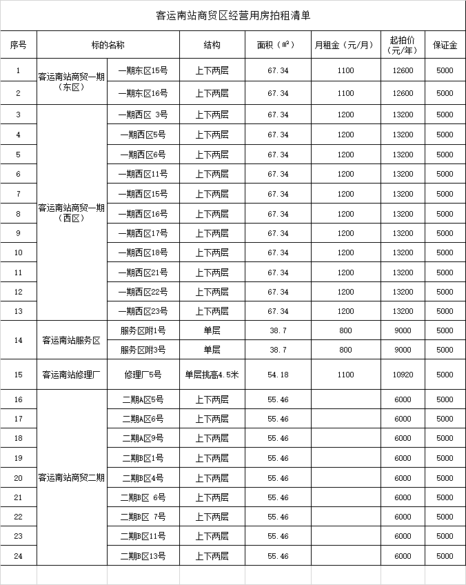 六安客運(yùn)南站站內(nèi)門面共計(jì)24間,具體見下表: