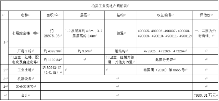 以上標(biāo)的整體拍賣,參考價(jià):7980.31萬元。