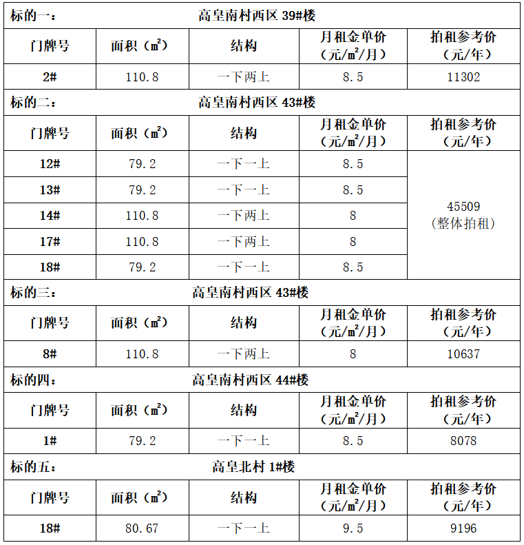 一、拍租標的:六安市裕安區(qū)平橋工業(yè)園高皇南、北村安置小區(qū)門面房3年期租賃經(jīng)營權,詳情見下表