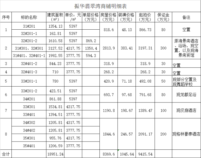一、拍賣標(biāo)的:六安市振華翡翠灣沿磨子潭路商業(yè)用房,詳見下方清單: