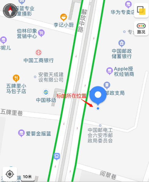 該門面位于解放中路郵政公司大門南側(cè),目前六安市最繁華的商業(yè)地段,皖西中路與解放路交叉口原百貨大樓對(duì)面,郵政公司底層, 周邊商鋪林立,人流密集, 匯集新百 春天百貨、 世紀(jì)聯(lián)華超市、西都時(shí)代廣場(chǎng)等商圈,500米范圍內(nèi)通訊業(yè)、金融業(yè)、珠寶業(yè)、服裝零售業(yè)、休閑娛樂(lè)等大小商業(yè)形態(tài)一應(yīng)俱全。門口有7路、301路、302路、202路、10路等各大公交主干線。