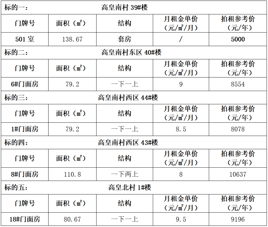 一、拍租標(biāo)的:六安市裕安區(qū)平橋工業(yè)園高皇南、北村安置小區(qū)住宅及門(mén)面房3年期租賃經(jīng)營(yíng)權(quán),詳情見(jiàn)下表