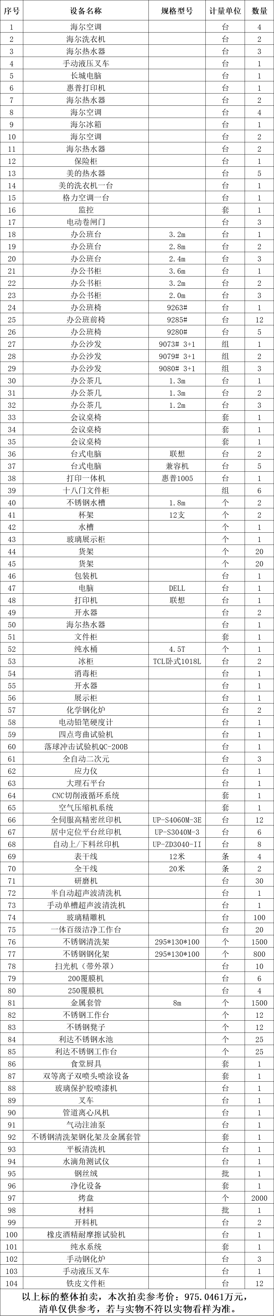 一、拍賣標(biāo)的:玻璃精雕機、自動上/下料絲印機、掃光機、凈化設(shè)備、研磨機、純水系統(tǒng)等二手設(shè)備一批,整體拍賣,參考價:975.0461萬元。競買保證金:100萬元。