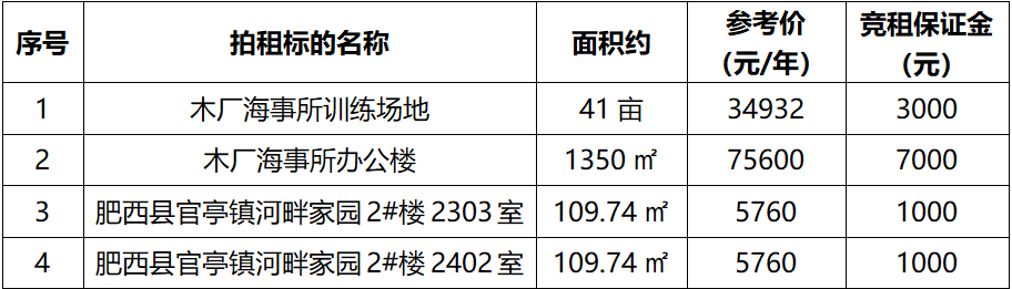 三、注意事項:有意競租者請交納保證金至賬戶:安徽邦德拍賣有限公司,開戶銀行:中國工商銀行股份有限公司六安解放路支行,賬號:1314202409300068442,并于拍賣會前完成網上報名手續(xù)。競買不成,保證金5個工作日內無息退還。成交后,買受人需向中拍平臺支付0.15%軟件使用費。